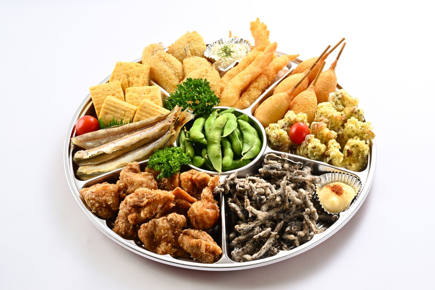 内容;若鳥串、純けい串、砂肝串、鳥皮串、串カツ串、枝豆